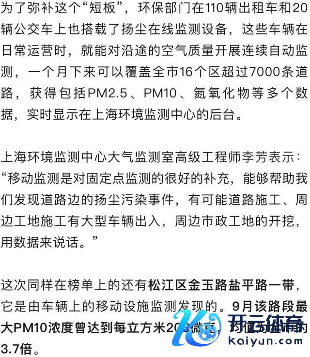 据先容,现在上海全市成立有11个固定式交通环境空气监测站,而从发布的榜单中不错发现,不少重灾地齐位于郊区偏远区域,有的区域并莫得成立固定监测点。