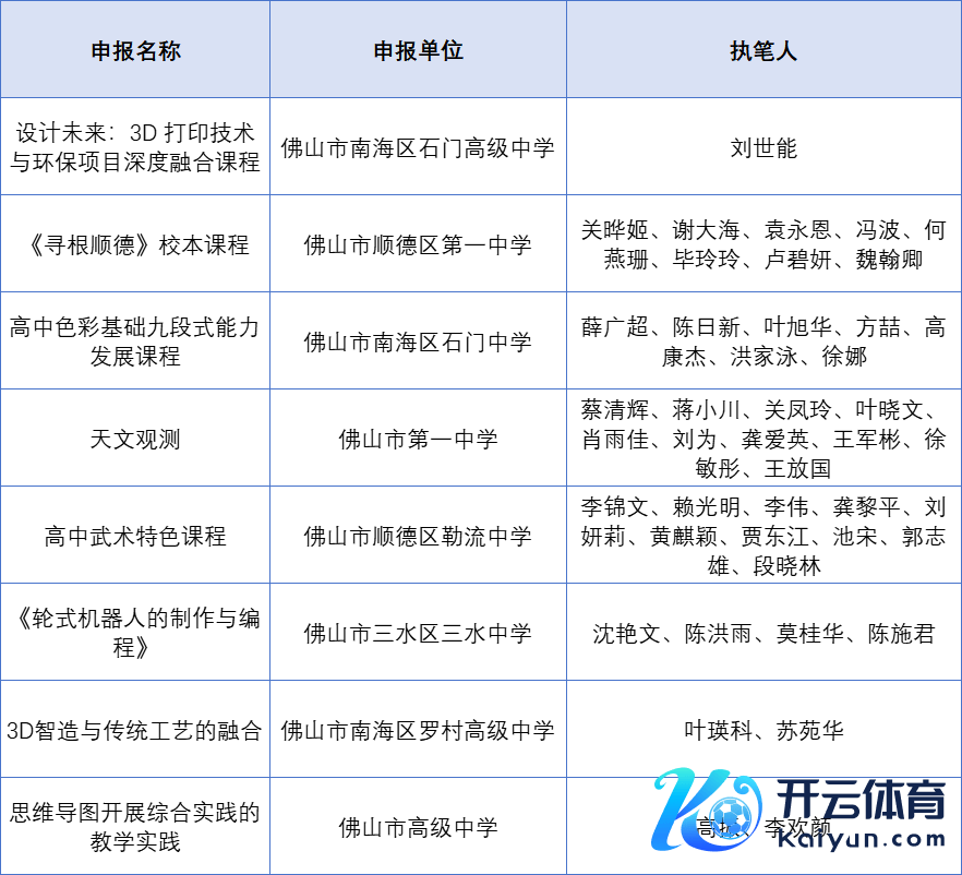 广东省教师厅日前在官网公示了广东省世俗高中特质课程开拓优秀效果名单。佛山市共有15项效果上榜云开体育,包括南海区石门中学《高中颜色基础九段式智力发展课程》、顺德区第一中学《寻根顺德》校本课程等等。