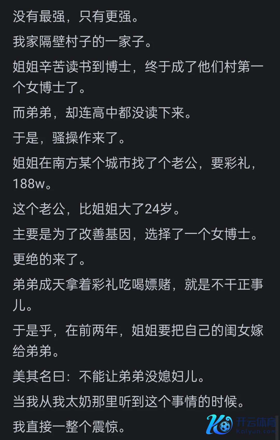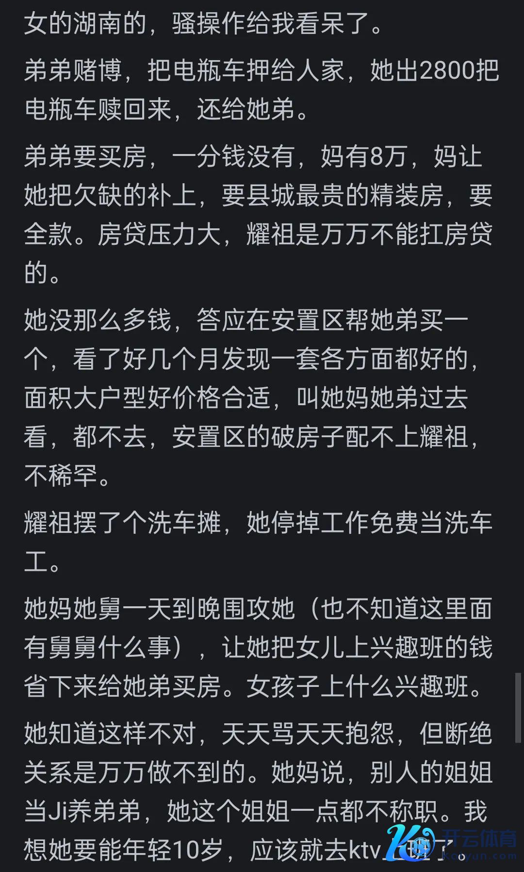 我亲嫂子的姐姐才是我见过最给力的扶弟魔,买房买车给弟弟,给弟弟抚养三个小孩,重要我方不错没车没房但弟弟一定要有,她我方生了一个女儿说女儿是跟别东说念主姓的,不错不亲,但弟弟和侄子们要亲因为同姓,弟弟光宗耀祖了我方才有好看更服她老公,诚挚东说念主一个我方天天开烂卡车去厂里拉废品赚的钱皆给她去补贴娘家